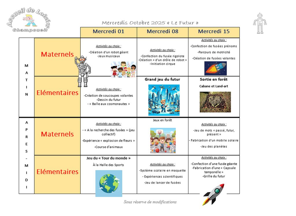 Voici le planning d'activités pour le mois d'octobre 2025.