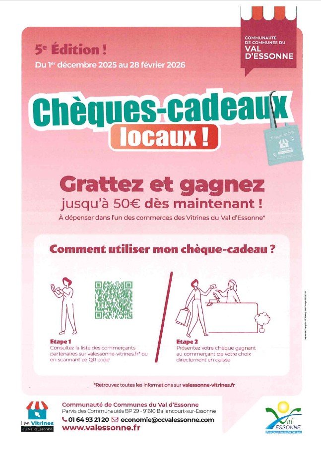 La 5ᵉ édition de l'opération "Chèques-cadeaux locaux" des vitrines du Val d'Essonne.