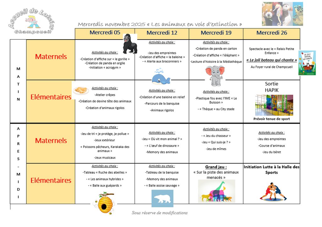 Voici le planning d'activités pour le mois de novembre 2025.