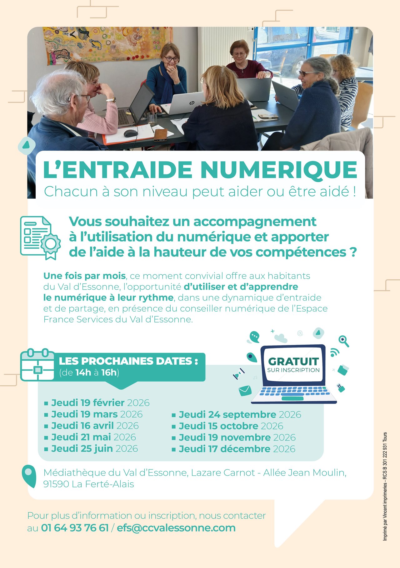 Animés par le conseiller numérique de l’Espace France Services du Val d’Essonne, ces ateliers permettent aux habitants du territoire d’apprendre le numérique à leur rythme.