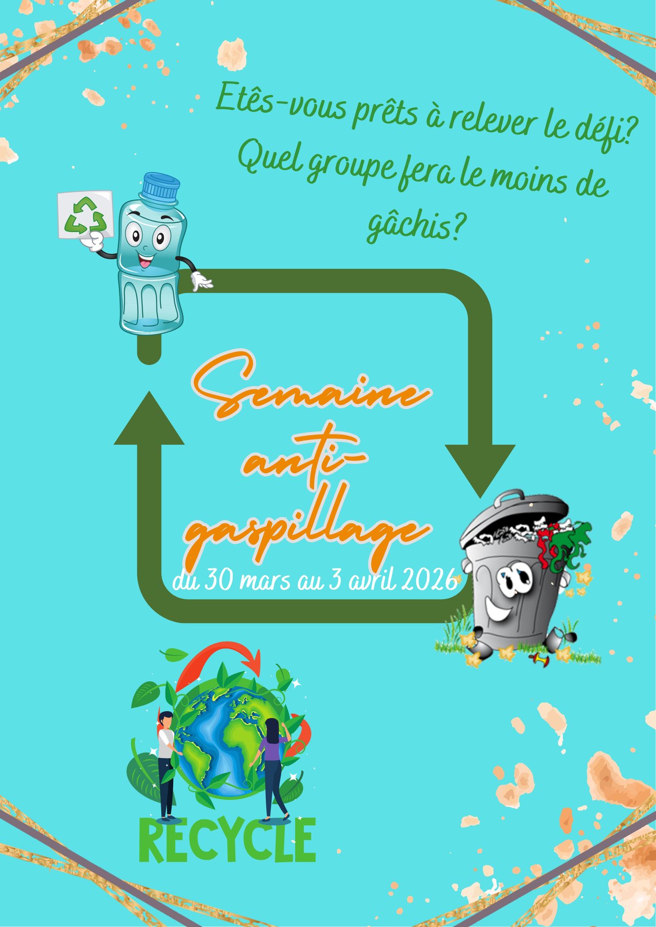 La semaine “anti‑gaspillage” se déroulera du lundi 30 mars au vendredi 3 avril 2026. Elle a pour objectif de sensibiliser les enfants à des gestes simples, responsables et respectueux de l’environnement.