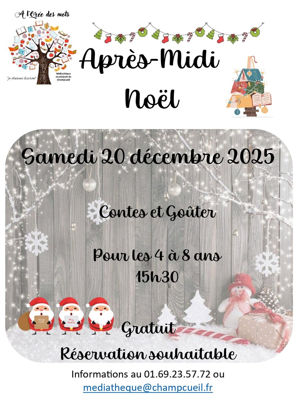 Catherine et Françoise de l'équipe de la Médiathèque ont le plaisir d'inviter les enfants entre 4 et 8 ans pour un après midi autour d'histoires de Noël suivi d'un petit goûter.