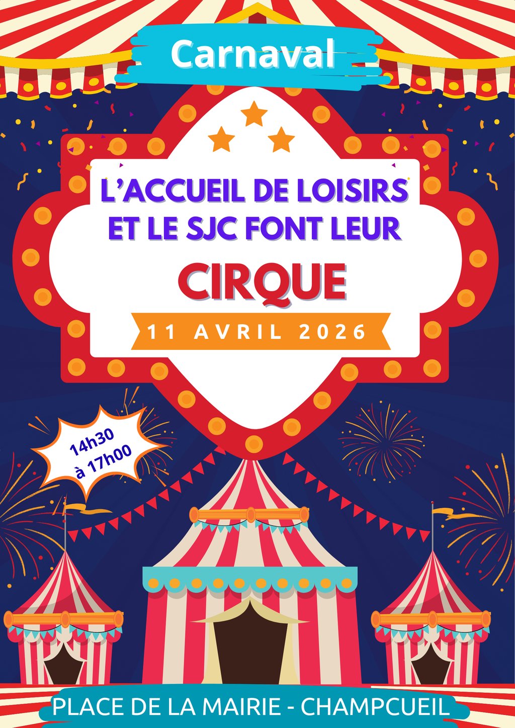 L'accueil de loisirs et le service jeunesse de Champcueil, vous proposent de venir participer au carnaval sur le thème du cirque.