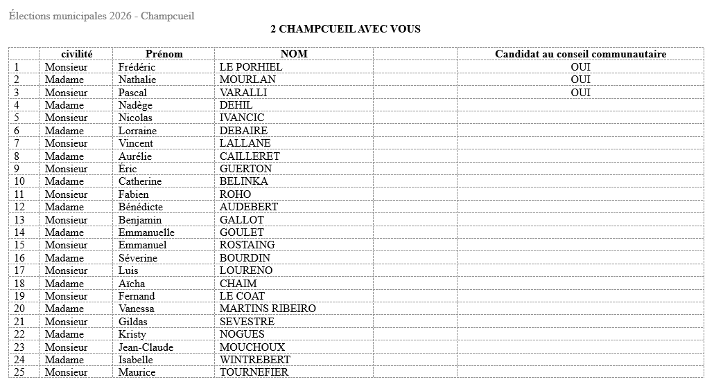 ELECTIONS MUNICIPALES 2026 - CHAMPCUEIL